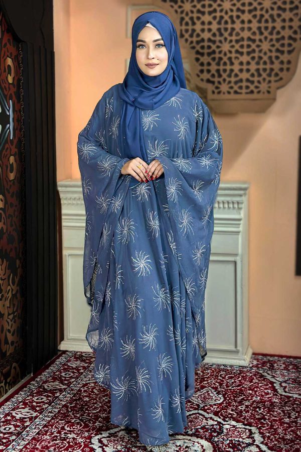 1 review(s) for "Ash Color Abaya with Embroidery & Stone Work"